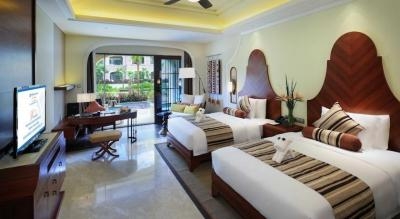 - 56 делюкс Pool Access Room - 68 м2, спальня 42 twin/14 king + ванная комната душ+ванная с термальной водой на балконе ; балкон. Вид на сад. Размещение 2 взрослый+1 ребенок,