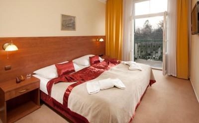 Хорошо расположен, корпус отеля в хорошем состоянии, главными достоинствами отеля для отдыхающих является наличие Aquaforuma и наличие подземного перехода до Царских лазней(курорта). Очень хорошее питание, утром буфет, в обед и вечером буфет + выбор из трех-четырех горячих блюд. приятный персонал.