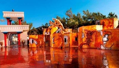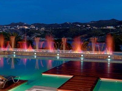 - Бассейн: 5 бассейнов: Oasis пресная вода c небольшой водной горкой для детей, Crystal Energy пресная вода , Ruby Red пресная вода , не для маленьких детей, Safran открытый, пресная вода , только для гостей отелей Divine Thalassa и OH! All-Suite Hotel, Euphoria крытый, пресная вода , в спа-центре, джакузи и гидромассаж. Бассейны функционируют в определенные месяцы сезона и доступны гостям в зависимости от их размещения,