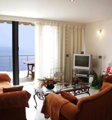 - 3-й этаж Вход, салон-гостиная с выходом на просторную террасу с потрясающим видом на море, оборудованную тентом от солнца и деревянной мебелью. Спутниковое телевидение, домашний кинотеатр, DVD/CD-плейер. Современная отлично оснащенная кухня открытого типа, большой холодильник с морозильной камерой, плита, духовка, микроволновая печь, посудомоечная машина, электрочайник, тостер, электрокофеварка, пароварка, кондиционер, туалет,
