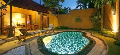 Находится в самом центре Санура. Отель состоит из нескольких вилл, каждая из которых имеет свой собственный бассейн и джакузи c ванной и душевой кабиной, огромной кроватью king size bed и индивидуальным входом. Гости могут воспользоваться услугами спа-центра отеля Parigata Resort, куда их доставит бесплатный автобус.
