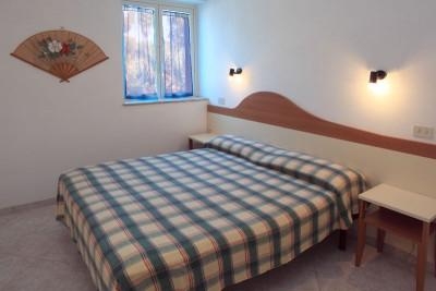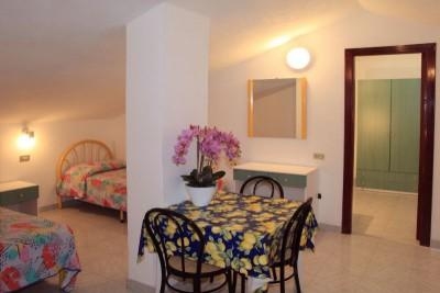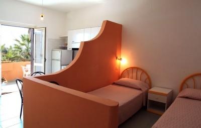 60 номеров. Площадь 30 м2. Вид на сад, море или здание. Покрытие пола-кафель. Балкон/ терраса. 1 двуспальная или 2 односпальные кровати, дополнительное спальное место - кушетка. Мини-кухня: плита, раковина, посуда, мини-холодильник. Душ. В номерах нет: кондиционера, ТВ, телефона, интернета. Аренда сейфа на ресепшн (2 евро/ сутки). Уборка номеров не производится, по запросу предоставляются средства для самостоятельной уборки номера. Смена постельного белья и полотенец платно, по запросу,