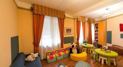 Для детей есть детский бассейн, игровая площадка, развлекательная программа кино, книги, игры , комнаты для пеленания, детская ванночка, стерилизатор для бутылочек, няня, детские стульчики в ресторане.