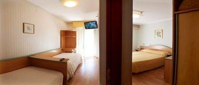 Номерной фонд отеля состоит из Double room - type "E" (17 м2, 1 двуспальная или 2 кровати twin, вид на море в некоторых номерах, 1 или 2 этаж) Triple room - type "D" (19 м2, 1 двуспальная и 1 односпальная кровати, 1 или 2 этаж) Four bedded room - type "H" (27 м2, 1 двуспальная кровать и 2 кровати twin, вид на море, большая терраса, 3 этаж) Family room - type "A" (34 м2, 1 комната с одной двуспальной кроватью и одна комната с двумя кроватями twin, 1 или 2 этаж) Family room - type "В" (42 м2, 1 комната с одной двуспальной кроватью, 1 спальня с двумя кроватями twin и 1 небольшая комната с двумя кроватями twin. Две ванные комнаты, 1 или 2 этаж) Family room - type "C" (27 м2, 1 комната с одной двуспальной кроватью и одна комната с двумя кроватями twin. Одна ванная комната, вид на море, 1 или 2 этаж) Family room - type "G" (37 м2, 1 комната с одной двуспальной кроватью и одной односпальной кроватью и 1 комната с одной двуспальной кроватью. Одна ванная комната, вид на море, 3 этаж) 2 double rooms with connecting door - type "F" (37 м2, 2 комнаты с двуспальными кроватями. Две ванные комнаты, 1 или 2 этаж) 1 double room and 1 triple room - type "I" (42 м2, 1 комната с одной двуспальной кроватью и 1 комната с одной двуспальной кроватью и одной односпальной кроватью. Две ванные комнаты, вид на море, 3 этаж),