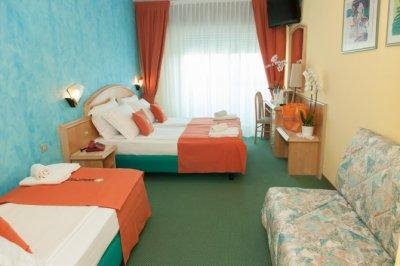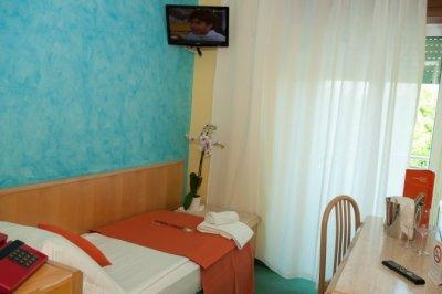 Номер маленький, чистый,большая плазма на стене-чадо смотрело итальянские мультики.Большая кровать двушка и что важно ,если вы едете с ребенком- не раскладушка а полноценный диван-кровать как доп. место.