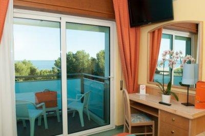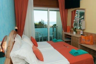 Номерной фонд отеля состоит из Double стандарт Room (15 м2, боковой вид на море, двуспальная кровать, максимум 2 человек) Double Superior Room (18 м2, двуспальная кровать, дополнительная кровать или диван-кровать, максимум 3 человек) Family Room (21 м2, вид на море или боковой вид на море, двуспальная кровать, односпальная кровать, дополнительная кровать или диван-кровать, максимум 4 человек) Family Suite (31 м2, 2 террасы, частичный и боковой вид на море, прихожая, спальня с двуспальной кроватью, спальня с двухъярусной кроватью, 2 ванные комнаты, максимум 4 человек) Double Basic (15 м2, находятся на первом этаже, без балкона, французская двуспальная кровать, удобства для людей с ограниченными возможностями, максимум 2 человек) Single Room (10 м2, максимум 1 человек).