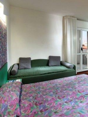 Отель достойныйи очень красивый - полностью соответствунт картинкам на его сайте(www.palaceviareggio.com).Номер был без балкона - выходил во внутренний дворик. Все номера с балконом выходили на променад - там допоздна играла музыка в многочисленных кафешках - так что я не прогадала. В номере кондиционер, ванная,гели-шампуни от Etro,небольшой холл.Есть бесплатный сейф. Уборка качественная,белье меняли ежедневно.В один из дней утром не включился кондиционер (на ночь я его отключала - не было нужды) - уходя на пляж сообщила менеджеру на ресепшн - когда вернулась все исправно работало. На ресепшн пытаются говорить по-русски (здравствуйте-досвидания-как дела). Очень доброжелательный персонал. На верхнем этаже расположена терраса с которой открывается вид на все побережье. Здесь же есть бар. Несколько раз была ждивая музыка и танцы.Днем можно позагорать на лежаках.