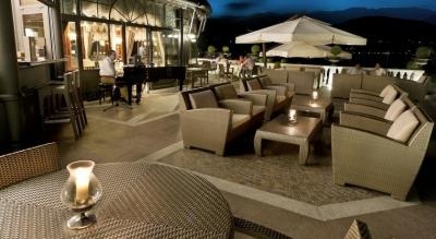 Отель стоит на берегу живописного озера Маджоре и окружен прекрасным парком. Это великолепное место для романтических прогулок и отдыха. Недалеко расположен пирс, откуда можно совершать поездки на катере по озеру.На территории отеля имеется: В настоящий момент отель предлагает своим гостям 115 элегантных номеров, спортзал, бильярд, теннисный корт, бассейн, сауну, частный пляж, подземный гараж на 50 машин, уроки верховой езды, парусный спорт и серфинг за дополнительную плату. Недалеко от отеля расположено поле для гольфа.