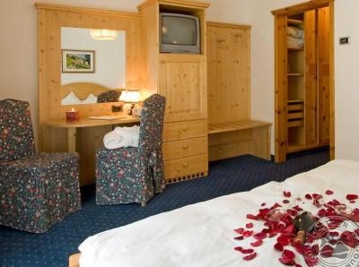 В номерах есть: Телефон, спутниковое. ТВ, сейф, ванная комната душ/ванна, фен, халат. Большинство номеров с балконом. Имеется возможность четырёхместного размещения. Из окон всех номеров открывается великолепный вид на вершины доломитовых. Альп. Standart: 15-20 м². Suite: 28 м², номера разделены на две зоны: спальня и гостиная, минибар.