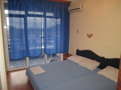 - Во всех номерах балкон или общая терраса, кондиционер, ванная комната (в душе занавеска или слив в полу), телевизор (нет русских каналов),