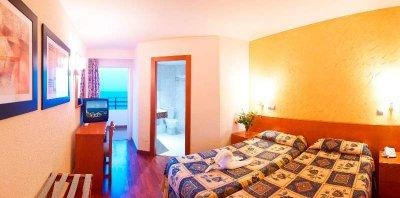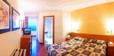 В отеле 8 жилых этаже, на этаже 9 стандартных номеров с видом на море, 2 торцевых и 3 маленьких с видом на горы и город. По совету туристов, отдыхавших в этом отеле, мы сразу попросили номер с видом на море на испанском языке. Портье очень проникся и дал ключи от номера на 3-м этаже. Номер не очень большой (хотя встречались и меньше), но вполне уютный. Собственно мы там только ночевали. Небольшая ванна со шторкой, вода горячая была всегда, гель для душа в пакетиках и мыло тоже. А вот шампунь нам почему-то положили за все время 1 пакетик. Но шампунь у нас был свой, так что никуда обращаться мы не стали. Телевизор с русским каналом, который мы не смотрели. Кондиционер. Холодильника нет. Пляжные полотенца по запросу под депозит 15 евро.