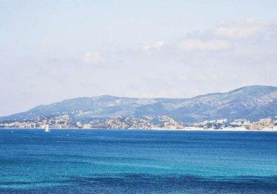 До ближайшей бухты-пляжа Кала Эстансия идти мимо соседнего отеля 3 мин (с учетом перехода проезжей части), очень близко. Бухта закрыта от волн двумя волнорезами, поэтому там всегда можно купаться. Но по утрам приносит много водорослей, которые почти не убирают (сгребают в кучи). На солце эти кучи гниют и издают неприятный запах. Есть места для подстилок (песок как-то сильно утрамбован или его мало, лежать жестко) и есть зонтики с лежаками, будка спасателя. Люди лежат, но мы предпочли ходить дальше через яхт-клуб к Плайя де Пальма, там пляж чистят по утрам техникой.