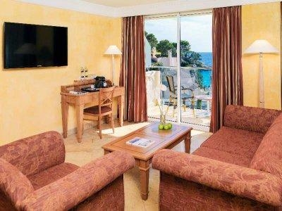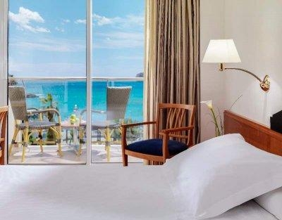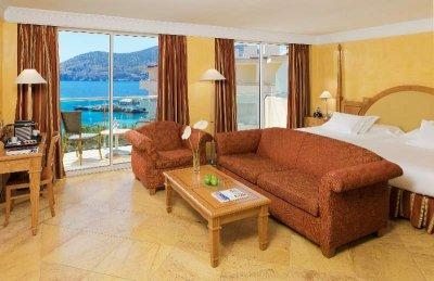 - 16 junior suites sea view (30 м2, спальня с гостиной зоной, боковой или прямой вид на море, максимум 3 человек),