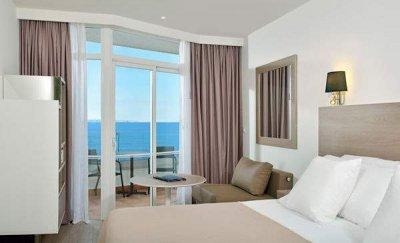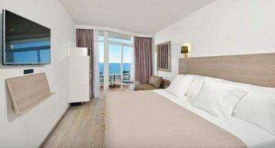 - junior suites (40 м2, однокомнатный номер, верхние этажи, вид на море, максимум 2+2 человек),