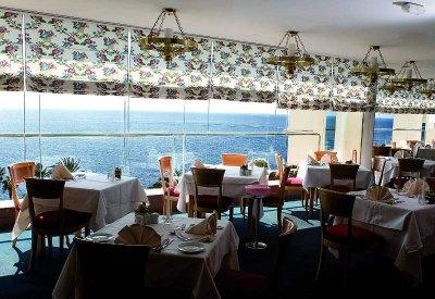 Питание в ресторане отличное, все есть и вкусная свежая рыба, и мясо разное, и фрукты, и соки свежие. Правда, мне показалось, что мясо готовят жестковато. На ужине за туристом закрепляют постоянный стол, на завтраки нет. За ужином все напитки платные. Ужин идет в две смены с 18-30 и с 20-30. Записаться можно на любую смену. Обедать можно и в отеле, стоимость с пивом около 40-50 евро с пары. В самом городке или в Пальме дешевле.