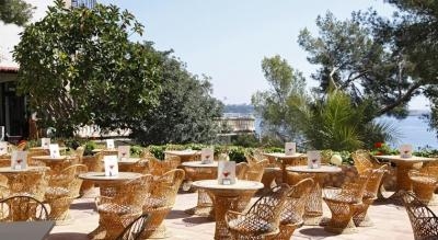 ПЛЯЖ И БАССЕЙНЫ: НИКАК. В общем, место для принятий солнечных ванн – это 4 площадки с лежаками и зонтами (на разных уровнях, разумеется) около двух крохотных бассейнов. Лежаки не нужно «бронировать» до 11-12 часов дня, то ли все просыпаются поздно, то ли отель был заселен не полностью. Мы до завтрака занимали лежаки на понравившемся нам месте и проводили там время до обеда. Потом уходили, так как солнце есть на всех площадках только с утра и до 1 часу дня. После этого его нужно «ловить» - территория отеля очень зеленая и много тени. С нижней площадки можно нырнуть или спуститься по лесенке в море. Пляжа нет, если не учитывать то недоразумение, что показано на всех фотографиях этого отеля. Там негде поставить даже пары лежаков. Кроме того этот «пляж» - просто песчано – каменистый заход в воду и пользуются им постояльцы трех отелей. От нашего отеля – по камням, вдоль обрыва… Муниципальный пляж – в пяти минутах пешком… Если вы отдыхаете возле бассейна – 3-4 этажа пешком наверх, 2-3 этажа вниз, через калитку, код от которой вам скажут на рецепции и 5 минут по набережной до городского пляжа. Лежак – 3 евро, зонт – 3 евро. В 9 утра никого нет, в 12 – нет свободных мест, особенно в субботу - воскресенье.