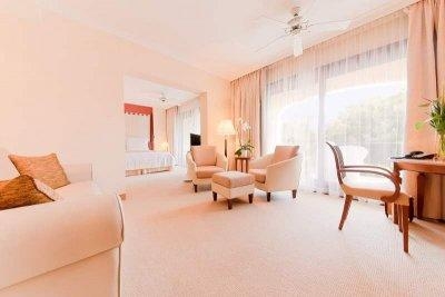 - 26 junior suite garden view (52 м2 номер + балкон или терраса 14 м2, вид на сад, кровать King size, доп. место – раскладная кровать, большинство номеров расположены на 1 этаже с прямым выходом в сад, максимум 2+1 человек),