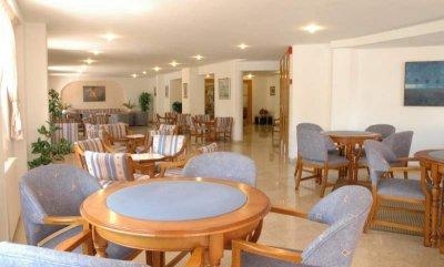 Столовая маленькая и душная. За каждым номером закрепляют свой столик. И если в номере живут только двое - запроста подсадят еще двоих. Завтраки не плохие, если не сказать, что хорошие. Правда практически не отличаются изо дня в день. На завтрак было: 3 разных сока (не юппи), 2 вида кофе (съедобного), чай, какао, тосты, хлопья, мюсли, помидоры, огурцы, 5-6 видов нарезки сыров и колбас, омлет, жареный бекон, сосиски, запеченные помидоры, джемы, мед, шок. паста, выпечка (магазинная), вареные яйца, 6 видов фруктов (ананас, яблоко, киви, арбуз, бананы, дыня), сухофрукты (инжир, курага, чернослив) и еще немного всего по мелочи. Ужины были просто великолепные. Всего не описать: мидии, кальмары, паэлья с креветками, мясо, птица, рыба, кролик и т.д. В местных ресторанах подавали точно такие же блюда. Один в один. Поэтому со второй недели мы перестали на обед ходить в городские рестораны - питались хамоном и сыром из супермаркетов, запивая все кавой и соком.