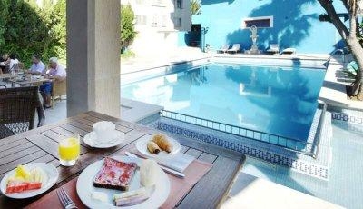 - Услуги: The beach and city hotel was renovated in 2007. It comprises a total of 73 guest rooms, spread over 4 floors. Fully air-conditioned, the hotel features a lobby with 24-hour reception and check-out service and lift access. There is a cafe, a bar, a pub, a disco and a restaurant. Business travellers will appreciate the conference facilities and WLAN Internet access is also available. Laundry service is provided and guests wishing to explore the local area can hire a bike directly from the hotel,