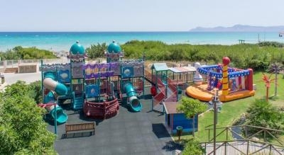 Отель на первой береговой линии идеально подойдет для семейного отдыха с детьми. Красивая ухоженная территория с оборудованной детской площадкой и бассейном с горками. Пляж Плайя де Муро рядом с отелем.