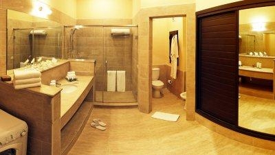 В номерах есть: Спутниковое телевидение. Индивидуальный кондиционер. Ванная комната с душем. Сейф. Телефон. Гостиная. Холодильник и мини-бар платно Балкон или терраса с 2 стульями и столом.