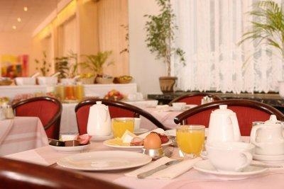 - Услуги: Built in 1960, this city hotel offers 6 single rooms and 59 are double rooms spread over 6 floors. Amongst the hotel''s facilities count a foyer with 24-hour reception, safes, a lift and a cloakroom. In addition, the hotel offers guests a restaurant with a non-smoking area, a TV room and a public Internet terminal with WLAN. Car parking facilities are available,