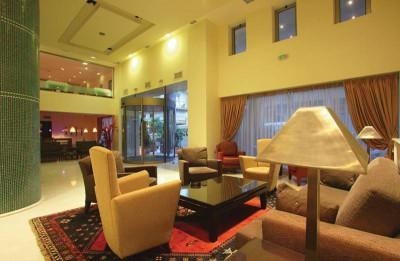 Позиционируется как отель A-class, что соответствует приблизительно 4 звездам. В принципе так оно и есть. Тем более, что мы сравнивали с Achillion, который на класс ниже. В лобби отеля есть бар, в котором мы брали кипяток (бесплатно), чтобы попить в номере чай или кофе. Также в лобби прямо перед лифтом стоит компьютер. Интернет стоит 5 евро час. В первый раз очень смутил лифт: когда он подъехал, мы стали ждать, когда откроются дверцы - однако методом тыка обнаружили, что сначала нужно открыть дверцу этажа, а только за ней двери самого лифта! В отеле есть камера хранения, где можно оставить вещи, когда отбываешь на длительные экскурсии. На втором этаже (который в подсчете этажей не участвует) находится пищеблок :)), где проходили все наши завтраки и ужины.