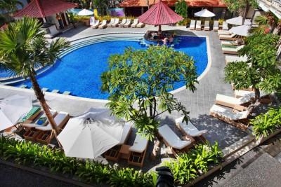 Хороший семейный отель расположен в тихом районе куты напротив ресторана Hard Rock, всего в 3 минутах от торгового центра Carrefour и в нескольких минутах от развлекательных заведений Легиана. Отель состоит из двух корпусов: современного Beach Wing и традиционного балийского Bali Wing. Отель подходит для любителей водных видов спорта, так как в отеле есть школа сёрфинга.