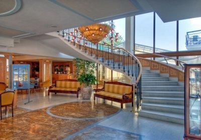 Расстояние до центра города: 300, На оживленной улице.На территории отеля имеется: 130 номеров, лифт, гостиная, американский бар, бар у бассейна, ресторан с в панорамным видом на море, сад, гараж.