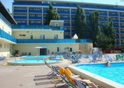 - Бассейны с подогревом: Бассейны санатория с минеральной водой имеют несколько чаш для взрослых и детей, оборудованных каскадными душами, установками: "подводный гейзер", "противоток", "водопад", Грибок". Возле бассейнов можно расслабиться и отдохнуть на шезлонгах, спрятаться от палящего солнца под зонтами и тентами или загорать в солярии,