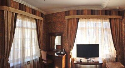 - двух местный номер эконом стандарт. Количество номеров: 2. Площадь номера, м2: 18. Количество основных мест: 2. Количество дополнительных мест: нет. В номере: душ, туалет, фен, халат, тапочки, косметика, ТВ, мини-холодильник, кондиционер, сейф, двуспальная кровать. Номера расположены на 1 этаже. двух местный стандартный номер. Количество номеров: 2. Площадь номера, м2: 22. Количество основных мест: 2. Количество дополнительных мест: нет. В номере: душ, туалет, фен, халат, тапочки, косметика, ТВ, мини-холодильник, кондиционер, сейф, двуспальная или две раздельные кровати. Номера расположены на 1 этаже. двух местный стандартный улучшенный номер. Количество номеров: 5. Площадь номера, м2: 24. Количество основных мест: 2. Количество дополнительных мест: нет. В номере: душ, туалет, фен, халат, тапочки, косметика, ТВ, мини-холодильник, кондиционер, сейф, двуспальная или две раздельные кровати, балкон. Номера расположены на 1, 2, 3 этажах. двух местный номер комфорт стандарт. Количество номеров: 2. Площадь номера, м2: 28. Количество основных мест: 2. Количество дополнительных мест: 1. В номере: душ, туалет, фен, халат, тапочки, косметика, ТВ, мини-холодильник, кондиционер, сейф, двуспальная кровать, балкон. Номера расположены на 3 этаже. двух местный номер студио. Количество номеров: 4. Площадь номера, м2: 32. Количество основных мест: 2. Количество дополнительных мест: 1. В номере: душ, туалет, фен, халат, тапочки, косметика, ТВ, мини-холодильник, кондиционер, сейф, двуспальная кровать, диван, балкон. Номера расположены на 2, 3, 4, 5 этажах. двух местный двух комнатный люкс. Количество номеров: 6. Площадь номера, м2: 45. Количество основных мест: 2. Количество дополнительных мест: 1. В номере: душ, туалет, фен, халат, тапочки, косметика, два ТВ, мини-холодильник, два кондиционера, сейф, двуспальная кровать, диван, кресло, балкон. Номера расположены на 4-5 этажах. двух местный двух комнатный люкс премиум. Количество номеров: 5. Площадь номера, м2: 50. Количество основных мест: 2. Количество дополнительных мест: 1. В номере: душ, туалет, фен, халат, тапочки, косметика, два ТВ, мини-холодильник, кондиционер, сейф, двуспальная кровать, диван, кресло, чайный набор или кофемашина, балкон. Номера расположены на 3, 6, 7 этажах. двух местный двух комнатный президентский люкс. Количество номеров: 3. Площадь номера, м2: 60-70. Количество основных мест: 2. Количество дополнительных мест: 1. В номере: душ, туалет, фен, халат, тапочки, косметика, два ТВ, мини-холодильник, кондиционер, сейф, двуспальная кровать, диван, кресло, балкон. Номера расположены на 2, 6, 7 этажах,