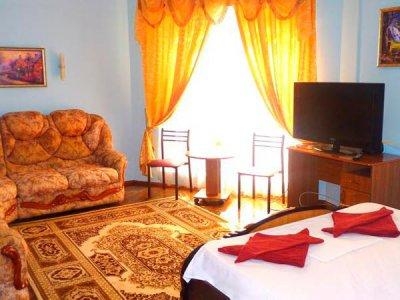 Номерной фонд отеля состоит из Два корпуса (отель расчитан на 18 номеров): двух местный стандартный номер. В номере: душ, туалет, ТВ, холодильник, кондиционер, двуспальная или две полуторные кровати. трех местный стандартный номер. В номере: душ, туалет, ТВ, холодильник, кондиционер, одна двуспальная кровать+ одна полуторная (или диван-кровать). трех местный семейный люкс. В номере: душ, туалет, ТВ, холодильник, кондиционер, мини-кухня (электроплита, набор посуды), две полуторные кровати+диван-кровать (или полуторная кровать). четырех местный двух комнатный семейный номер люкс. В номере: душ, туалет, ТВ, холодильник, кондиционер, одна двуспальная кровать, двуспальный диван и кресло-кровать.