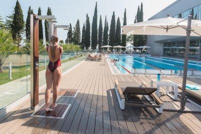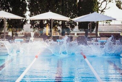- Спортивный подогреваемый бассейн с пресной водой, 4 дорожки по 25 метров, глубина 2-2,5 метра,