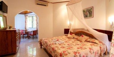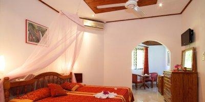 - В отеле 5 номеров с видом на океан, расположены на пляже Grand Anse, который славится своими бирюзовыми тихими водами, все номера с душем, потолочным вентилятором, небольшая терраса с видом на океан, номера размещают до 3 человек,