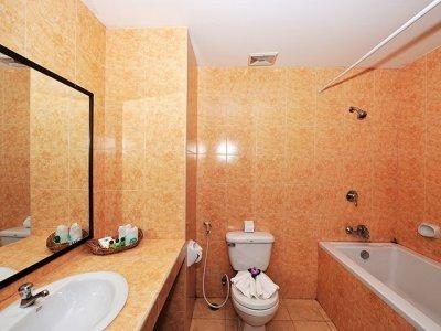 Сначала мы решили менять номер, но вовремя поняли, что это бесполезно и смирились с участью ранних пташек. Это единственный минус АПК Резорт, потому что в остальном все просто отлично для "тройки". Сантехника новая (главное, слив в унитазе европеизированный, кто был в Тайланде, тот знает, о чем я :-))))), ремонт хороший, мебель не обшарпанная, постель белоснежная, полотенца чистые - что еще нужно? В середине отдыха я поняла, что у ресепшн есть бассейн с джакузи, сначала я решила, что это небольшой декоративный ручеек. Но некоторые вечерами умудрялись там даже поплавать.