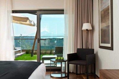 - 18 делюкс mountain view rooms (44-47 м2, 1 комната, 1 ванная комната, максимум 2+1 человек) – main building,