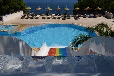 - Комментарии к бассейну и горкам: 1 открытый бассейн с пресной водой, без подогрева, площадь 105 м2. 1 водная горка,