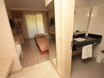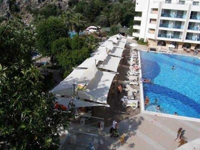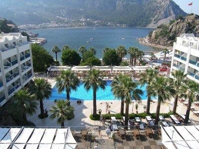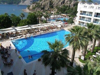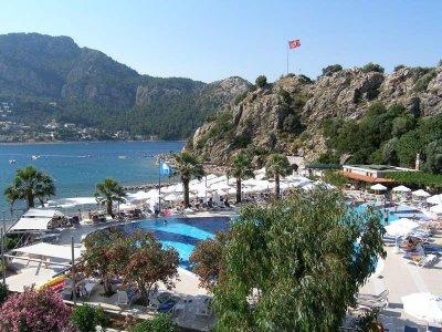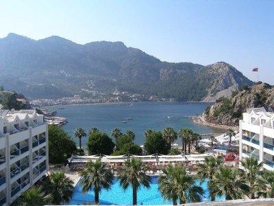 Экономичный вариант размещения. Отель расположен в уютной живописной бухте, окруженной высокими горами. Долгий трансфер из аэропорта через горы. До Мармариса можно добраться на катере.