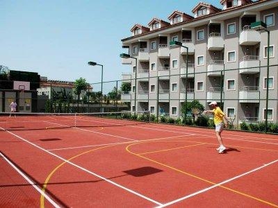 - 1 теннисный корт с тартановым покрытием,