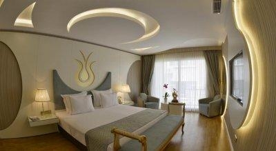 - 1 bosphorus suite with balcony (32 м2, одна комната, джакузи, кофемашина Espresso, ежедневная пресса, возможность бесплатного пользования хамам и сауной, балкон с видом на город или Босфор, услуги housekeeping, максимум 2 человек),
